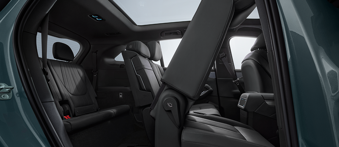 Os acabamentos em couro elevam o conforto em todas as fileiras. Aproveite aquecimento integrado, ventilação e sistemas de massagem em múltiplos pontos, projetados tanto para os passageiros da primeira quanto da segunda fileira. -