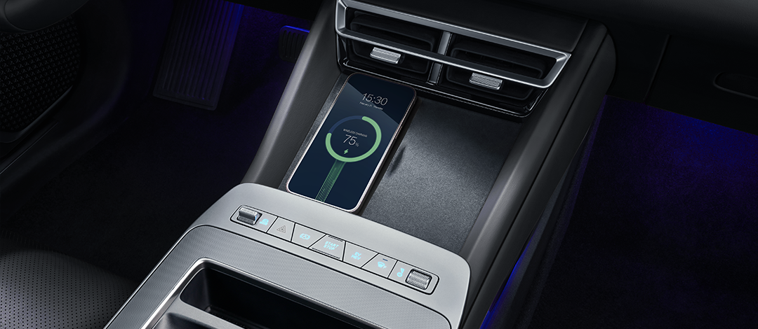 Carregue com a velocidade de um cabo. Com 50 W de potência — o padrão mais avançado da indústria — o sistema recarrega rapidamente smartphones compatíveis enquanto você está em movimento, garantindo que você permaneça sempre conectado.
